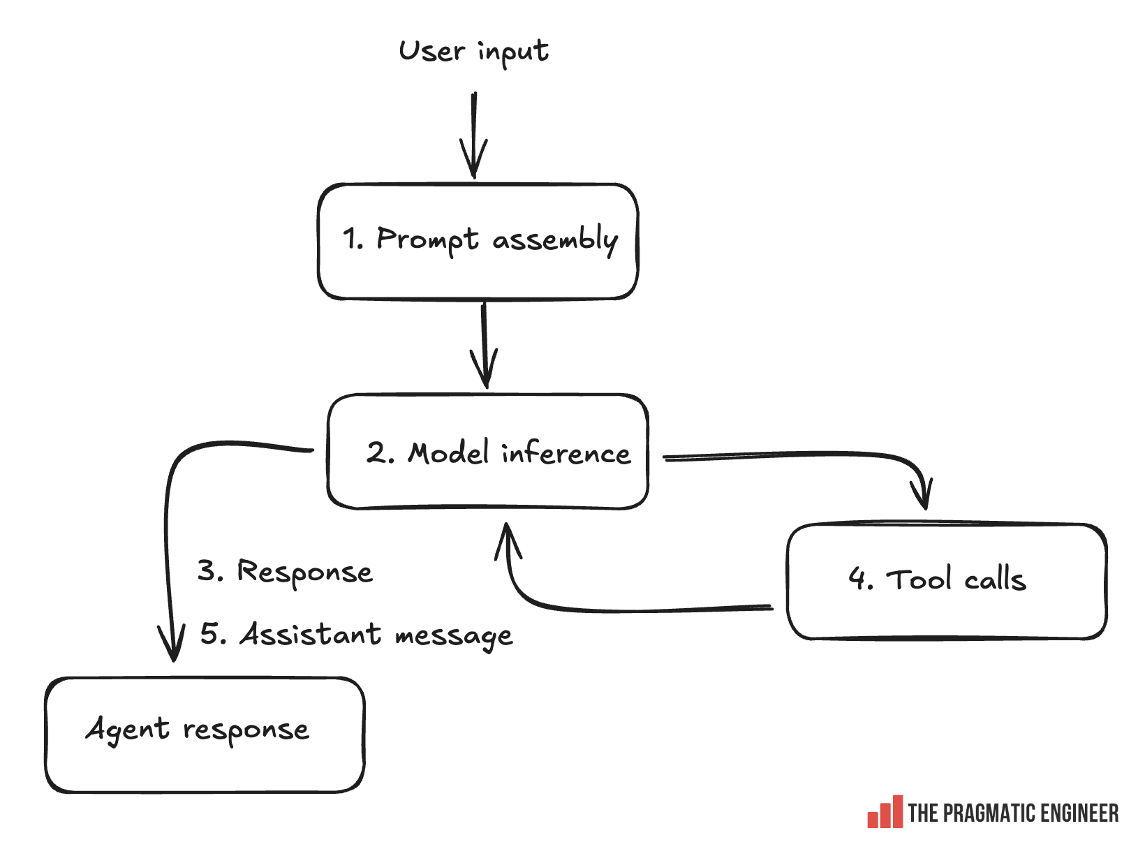Tool response (optional): if a tool was invoked, return the response to the model. Repeat steps 3 and 4 for as long as more tool calls are needed.